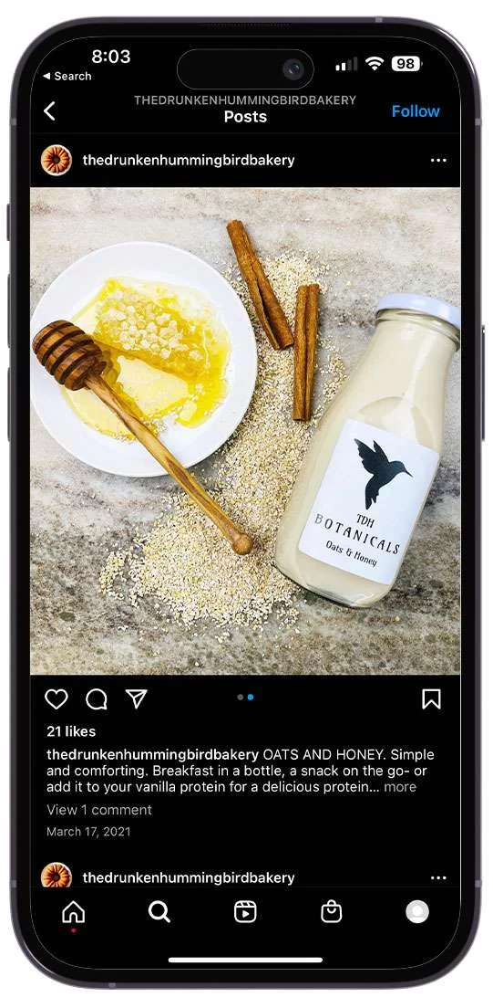 We created a target audience profile and a competitive audit. We identified potential customer concerns and deterrents regarding TDH’s products. These were primarily the high-caloric contents, as the confections are made with ample sugar and liquor. Shortly after opening, TDH began botanical drinks in response to the pandemic to help with illness and immunity. It was made fresh, had little competition, and was well received locally. We used these beverages as a bridge (between healthy bioactive food and liquor-infused confections), to create a cohesive brand identity and storyline for all content.