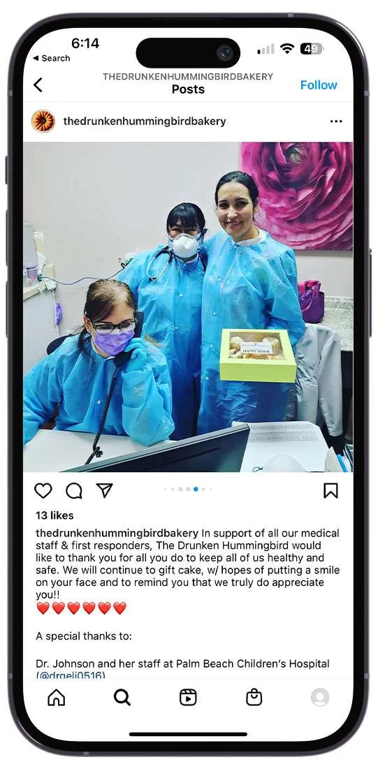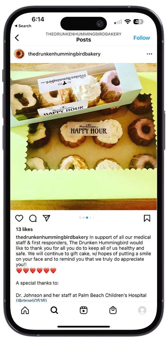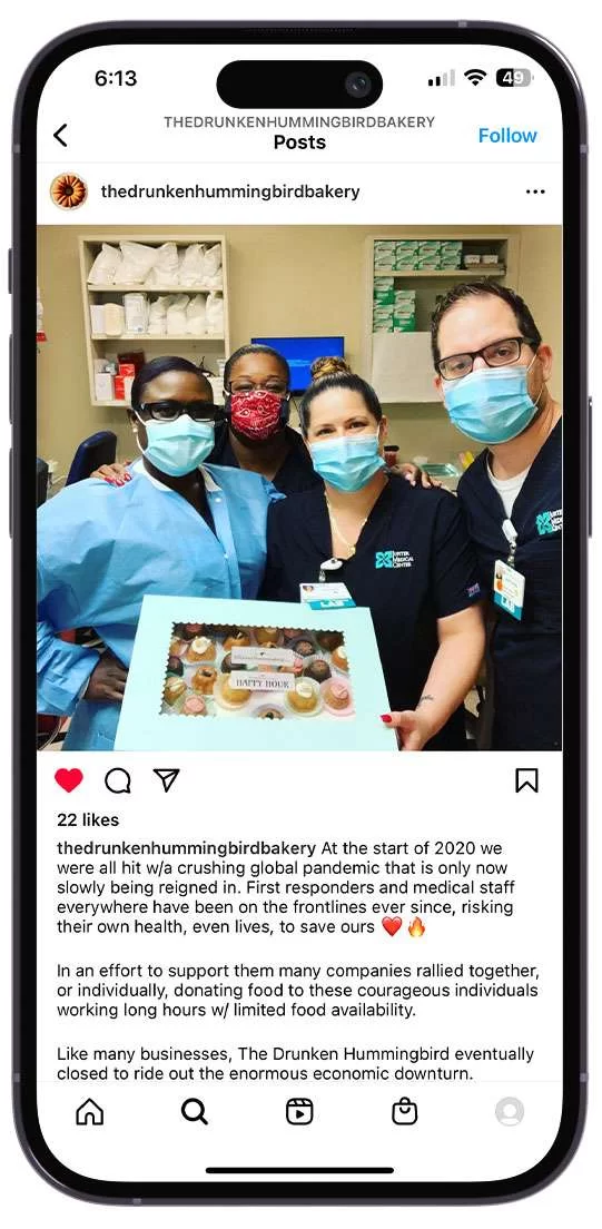 During the pandemic, We mobilized a TDH storytelling opportunity. The campaign was called #Happy Hour. We created “Thank You” flyers, to be handed out to first responders at various local hospitals and fire stations, and had them delivered along with boxes of free cake.